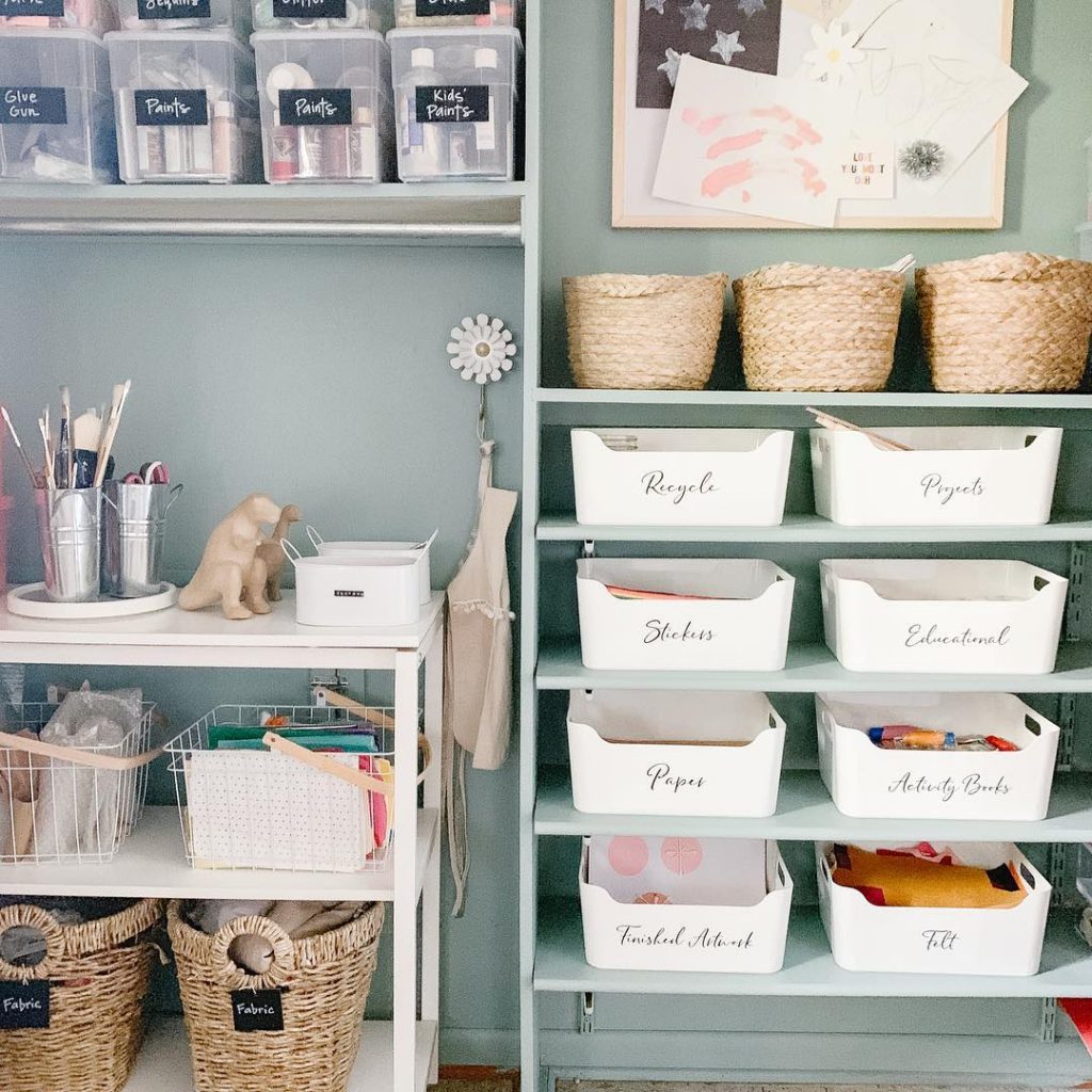- Canastas y organizadores te ayudarán a despejar el desorden al agruparlos por categorías (Fuente: Pinterest)