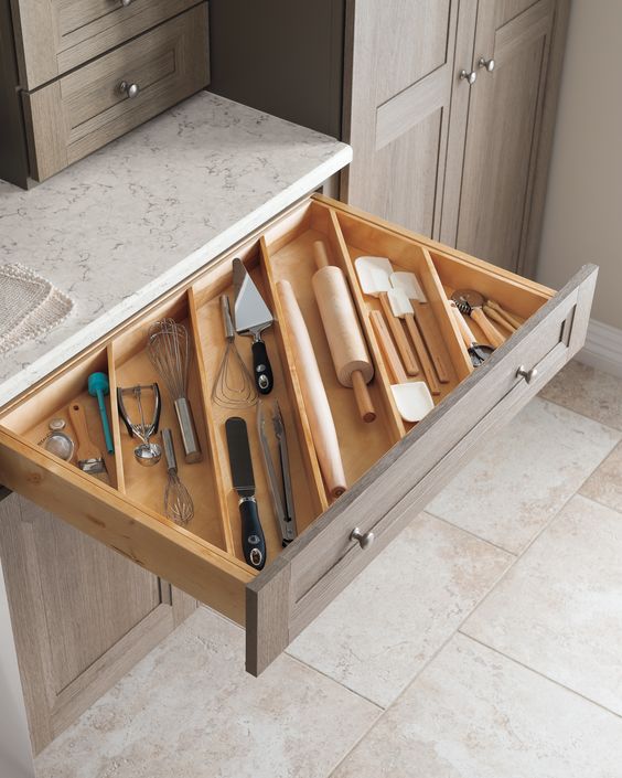 - Liberta tu mostrador de accesorios culinarios aprovechando el espacio en los cajones (Fuente: Pinterest)